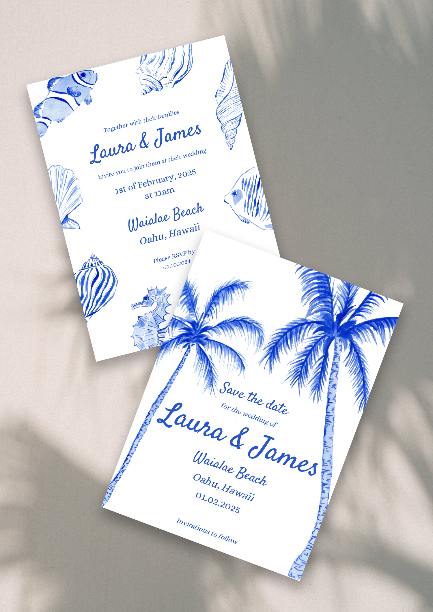Creating Your Invitations – I’ll craft your invites with love and attention to detail. After two rounds of revisions, we’ll finalise the design. Once approved, I’ll paint the originals, scan them, and turn them into digital templates, allowing you to easily customise your text as needed.